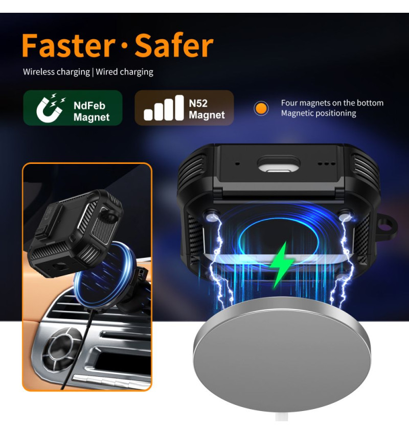 Etui Carbonox umożliwia zarówno ładowanie przewodowe, jak i bezprzewodowe, dzięki czemu nie musisz go zdejmować, aby naładować swoje słuchawki. Co więcej, jest w pełni kompatybilne z MagSafe, co pozwala na szybkie i wygodne korzystanie z akcesoriów magnetycznych bez konieczności zdejmowania pokrowca. Wyjątkowo funkcjonalny design uwzględnia widoczną przednią diodę LED.