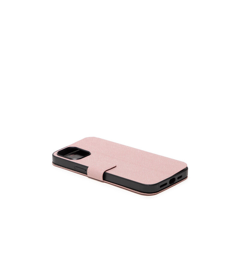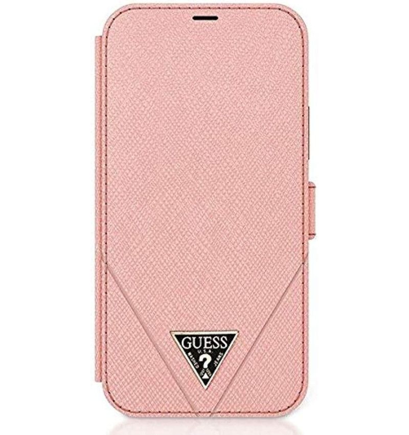 Etui Guess do iPhone 12 Pro Max pokryto bardzo przyjemną w dotyku fakturą saffiano.