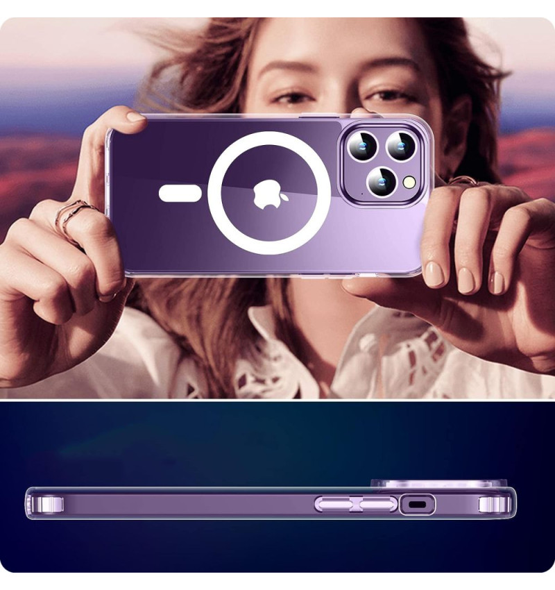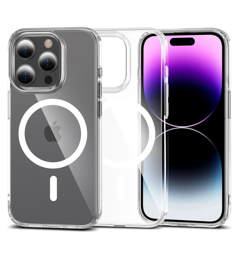 Klasyczny, jednoczęściowy case Flexair Hybrid Magsafe od Tech-Protect o przezroczystym wykończeniu, stworzony z myślą o podkreśleniu linii i oryginalnej sylwetki urządzenia.