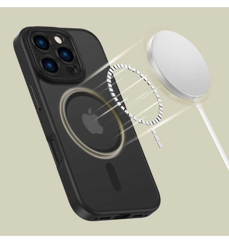 Wbudowany magnetyczny pierścień, kompatybilny z akcesoriami MagSafe, daje możliwość bezprzewodowego odnawiania energii bez konieczności zdejmowania etui z telefonu. Teraz możesz korzystać z ładowania w dowolnym miejscu i czasie, bez żadnych przeszkód.