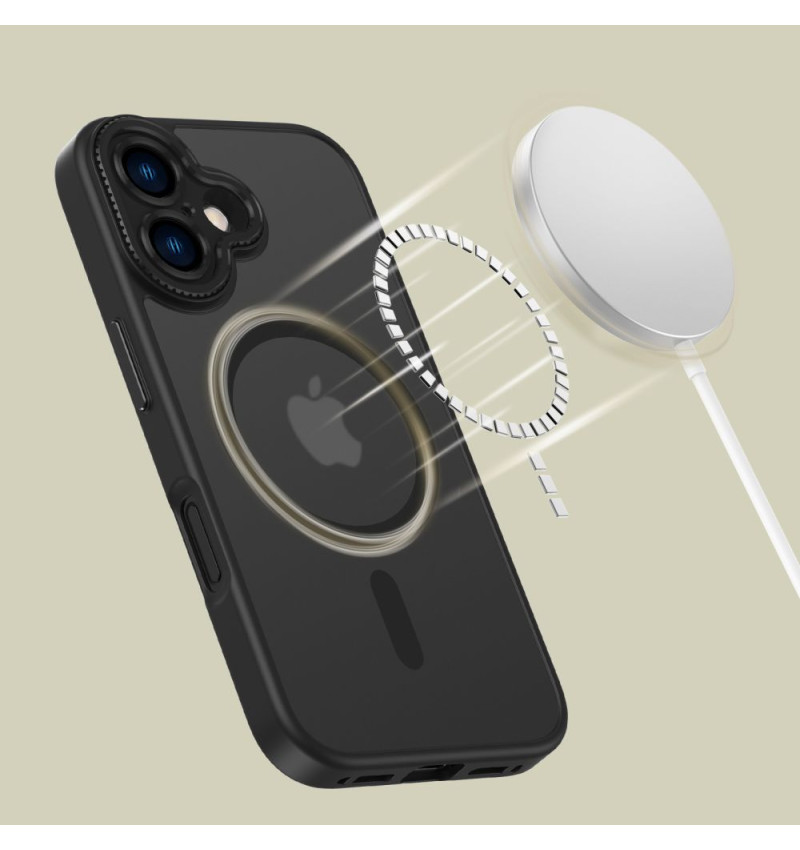 Wbudowany magnetyczny pierścień, kompatybilny z akcesoriami MagSafe, daje możliwość bezprzewodowego odnawiania energii bez konieczności zdejmowania etui z telefonu. Teraz możesz korzystać z ładowania w dowolnym miejscu i czasie, bez żadnych przeszkód.