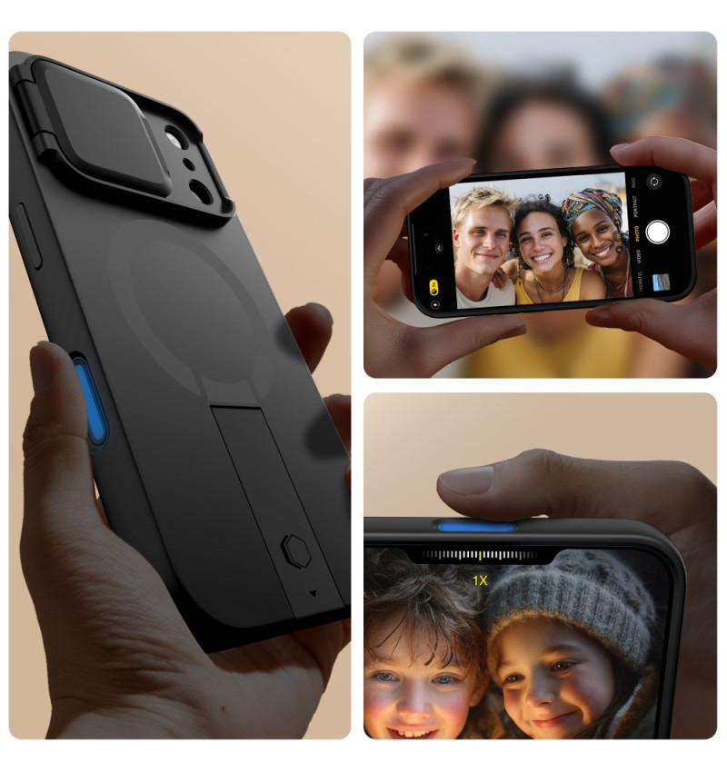 Etui zostało również wyposażone w osłonę na aparat, która chroni soczewki przed uszkodzeniami i zabrudzeniami. Precyzyjne wycięcia oraz delikatnie podniesione krawędzie wokół wyspy aparatu zapewniają dodatkową ochronę przy codziennym użytkowaniu.