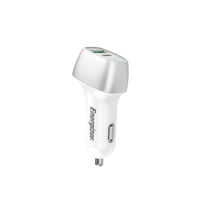 Ładowarka samochodowa Energizer Ultimate posiada port USB-C PD 20W oraz USB-A QC3.0 18W, co pozwala na jednoczesne uzupełnianie energii w dwóch urządzeniach.