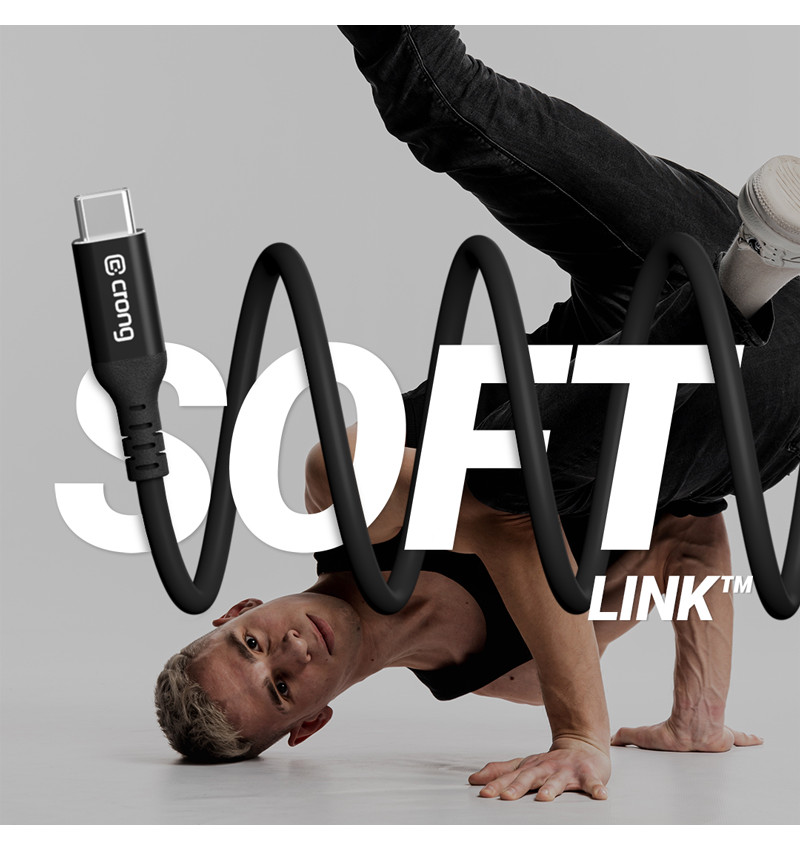 Soft Link™ to wysokiej klasy przewód USB-C obsługujący ładowanie PD o mocy 100W. Tak duża moc pozwala używać go nie tylko do ładowania najnowszych smartfonów oraz tabletów, ale również laptopów PC i Apple. Wbudowany chip E-Marker monitoruje na bieżąco napięcie prądu, tak aby zapobiec uszkodzeniu sprzętu oraz zapewnić stabilny dopływ energii.
