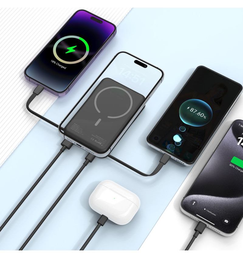 Tech-Protect PB31 LifeMag to lekki i kompaktowy power bank kompatybilny z technologią Magsafe, który cechuje się zaawansowaną funkcjonalnością oraz nowoczesnym designem. Dzięki pojemności 10000mAh zapewnia wystarczającą ilość energii, aby wielokrotnie naładować Twoje urządzenia mobilne, niezależnie od tego, gdzie się znajdujesz.