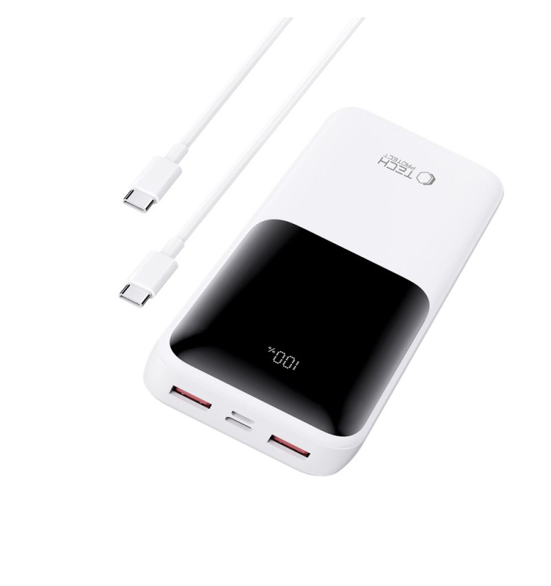 Tech-Protect PB02 Power Bank 20000mAh 22.5W to urządzenie stworzone z myślą o najbardziej wymagających użytkownikach, którzy potrzebują niezawodnego źródła energii w każdej sytuacji. Imponująca pojemność 20 000 mAh pozwala na wielokrotne ładowanie nawet najbardziej energochłonnych urządzeń, takich jak smartfony, tablety czy laptopy, zapewniając maksymalną wygodę i mobilność.