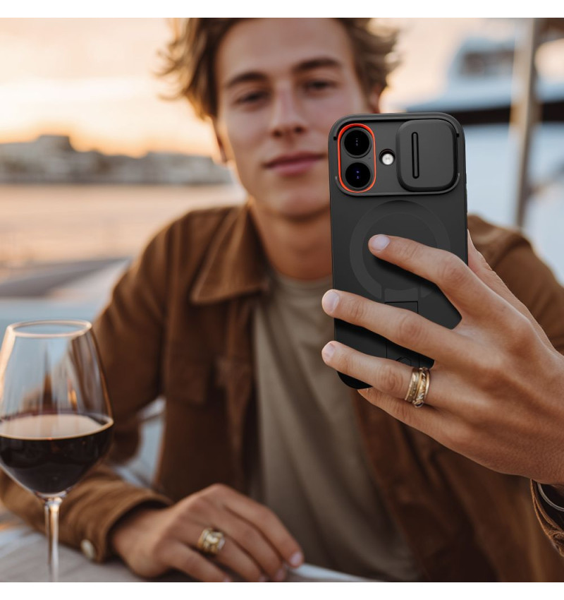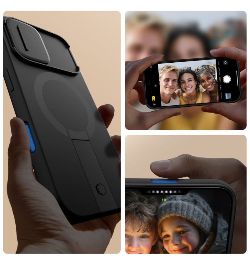 Etui zostało również wyposażone w osłonę na aparat, która chroni soczewki przed uszkodzeniami i zabrudzeniami. Precyzyjne wycięcia oraz delikatnie podniesione krawędzie wokół wyspy aparatu zapewniają dodatkową ochronę przy codziennym użytkowaniu.